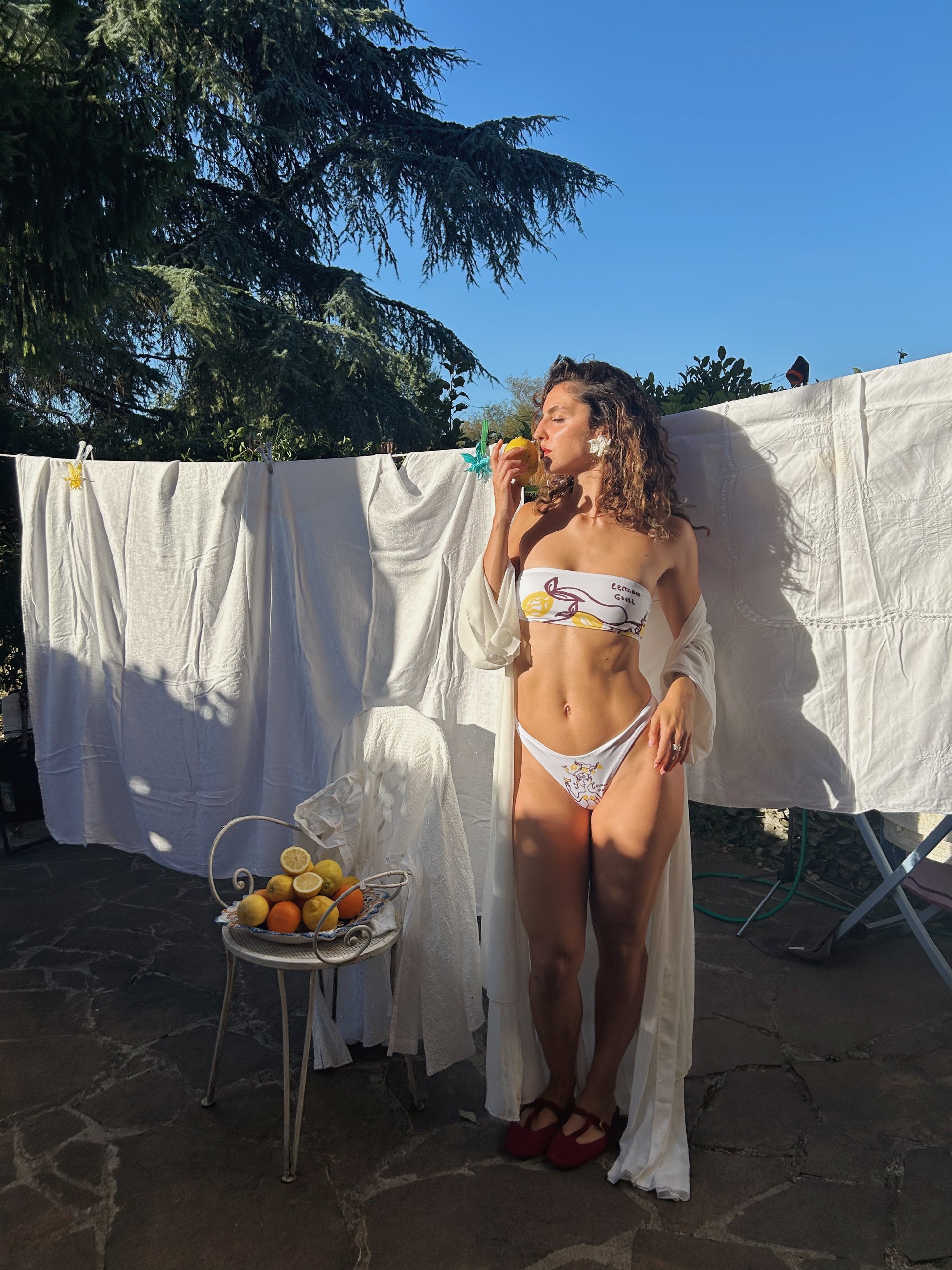Art You Can Wear- designed to be more than fashion, it's an invitation to express yourself through art, to choose creation over consumption, and to embody beauty with purpose. Each brushstroke tells a story inspired by the Italian summers, its sun-soaked lemons, wild nature, and earthy tones.
